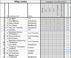 5.osakilpailu tulokset 13.09.2020 17:40 | by Ivan Rantanen Kisan tuloksiin TÄÄLTÄ Pistetaulukkoon TÄSTÄ Päivän pisteet: