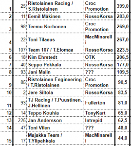 Sarjavitosena on Team 107 223,5 pisteellään (kaikki kisat ajettuna)