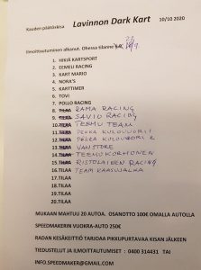 8sarjan palkintojenjako tullaan suorittamaan Dark Kart tapahtuman yhteydessä Lavinnon karting radalla Lauantaina 10.10.2020. Tapahtuman aikataulusta ja järjestelyistä voi kysyä suoraan Kari Vihreälehdolta ( 0400314431 / info.speedmaker(ät)gmail.com )
